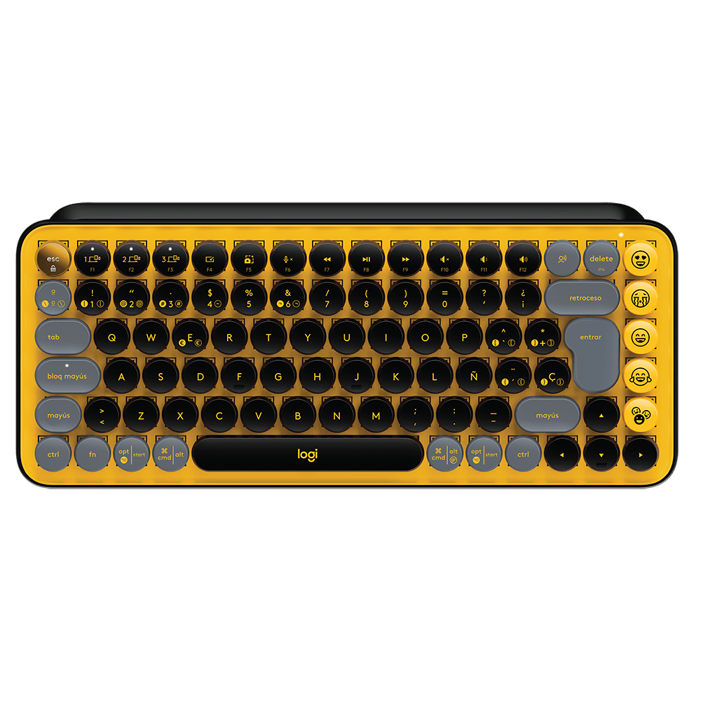 El Teclado Logitech Pop Keys Mecánico en color Amarillo es un teclado inalámbrico compacto y llamativo que destaca por su diseño retro y moderno a la vez, sus teclas mecánicas personalizables con emojis y su conectividad multidispositivo. Aquí tienes una descripción detallada: